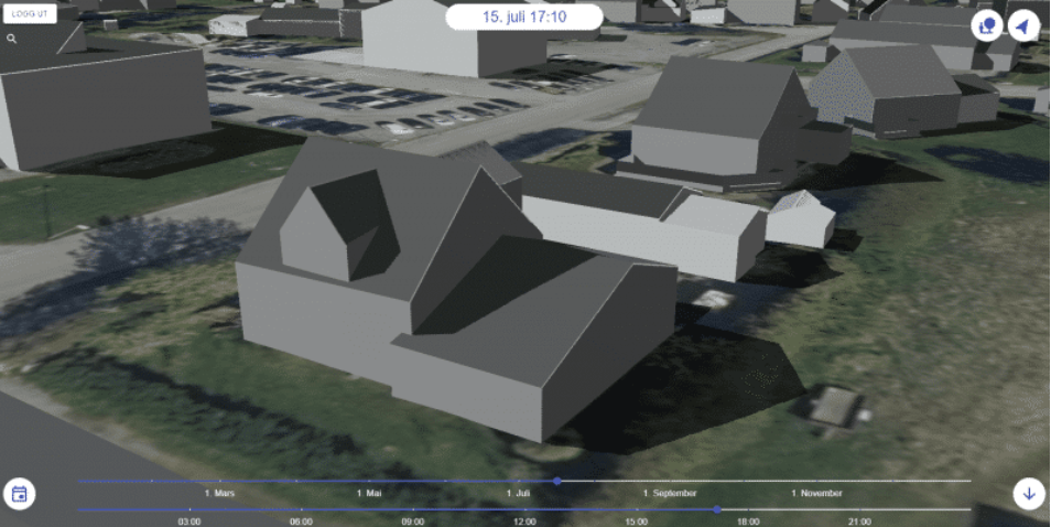 Med Norkarts tjeneste 3D "Solforhold og utsikt" kan du søke på adresse eller gårds- og bruksnummer, og følge solas bane over eiendommen. Slik finner du enkelt ut når solen går bak taket til naboen – eller om du får se solnedgangen fra den nye balkongen din.
