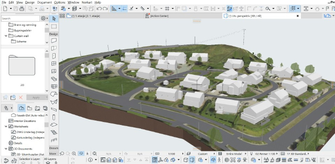 - Redigerbart terreng og koordinater: Terrenget importeres som en redigerbar mesh, og bygninger samt andre objekter plasseres på egne, oversiktlige lag. Koordinatene blir ivaretatt både i 2D- og 3D-dataene, noe som sikrer presisjon i ditt prosjekt.