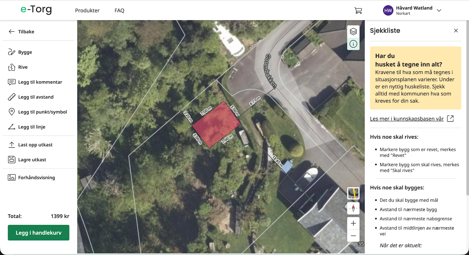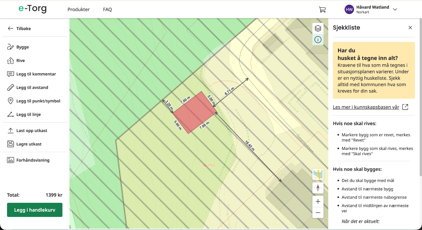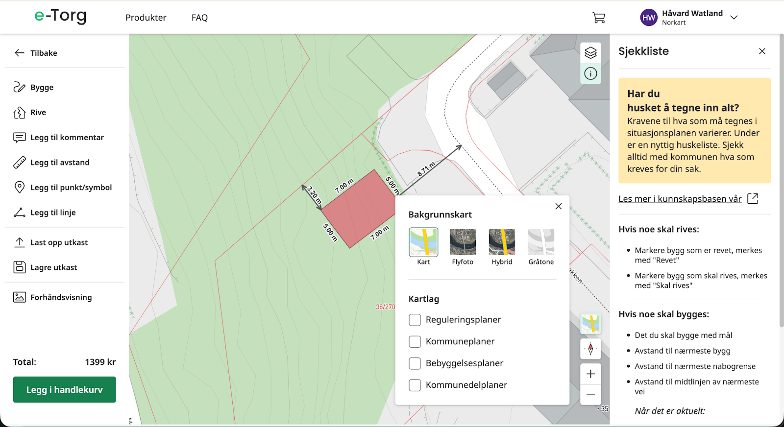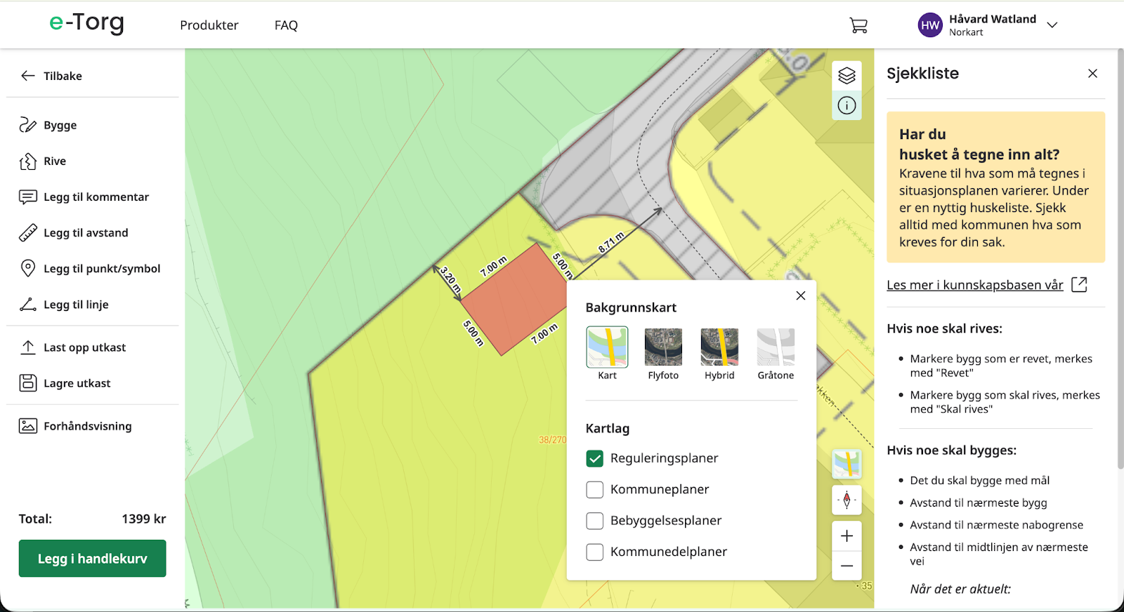 I Lag situasjonsplan har du tilgang til flere kartlag som kan velges, kartlagene kan deles inn i bakgrunnskart og reguleringskart.